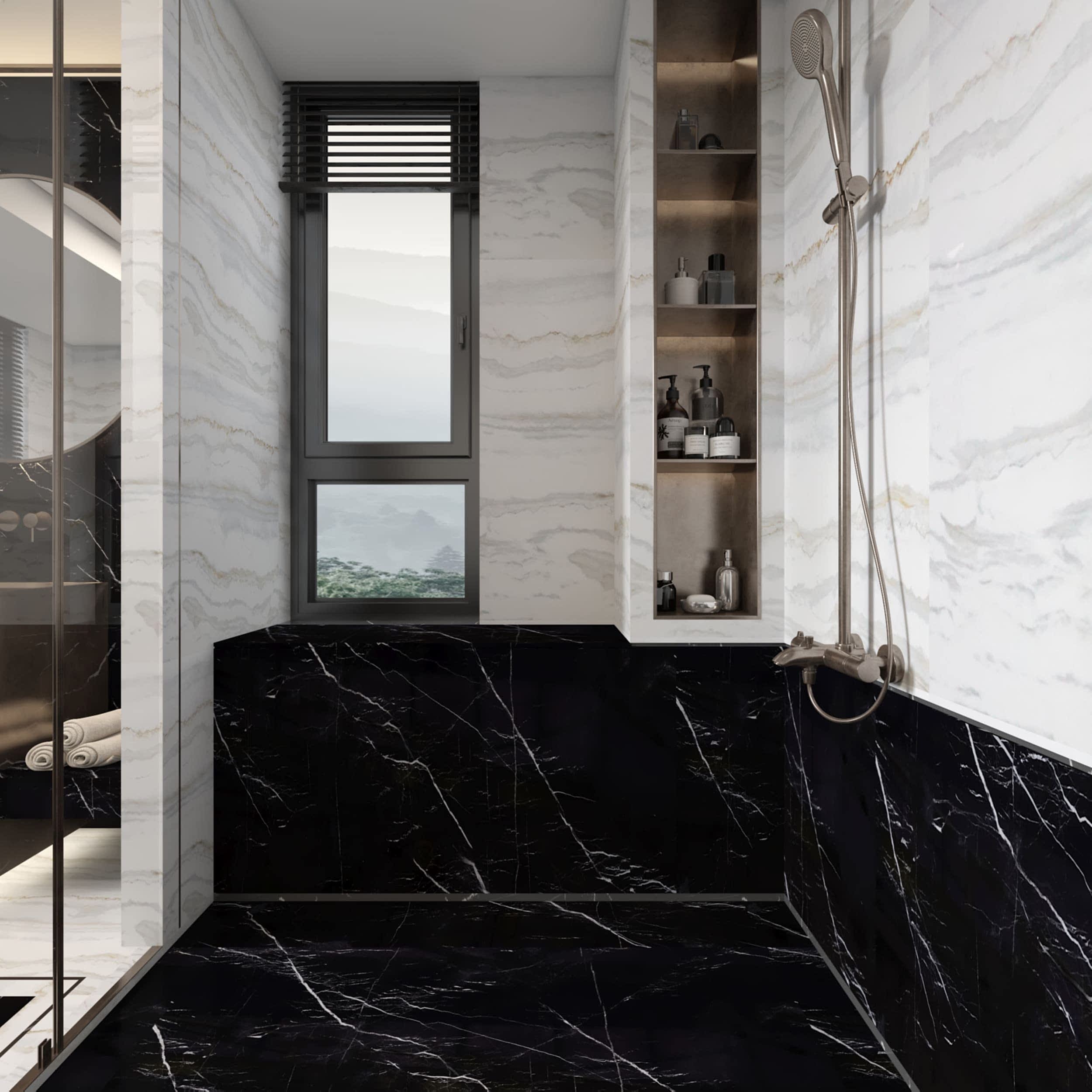 Alexandra Black is a black marble extracted from the rarest quarries and captivates with its beauty. As Alexandra Black, one of the Premium Stones with the expression of natural elegance, it is used in the most prestigious projects in the world. This unique marble, which has basically black color and white texture, offers a contrasting beauty with its veins. Please contact us for usage areas and more detailed information.
